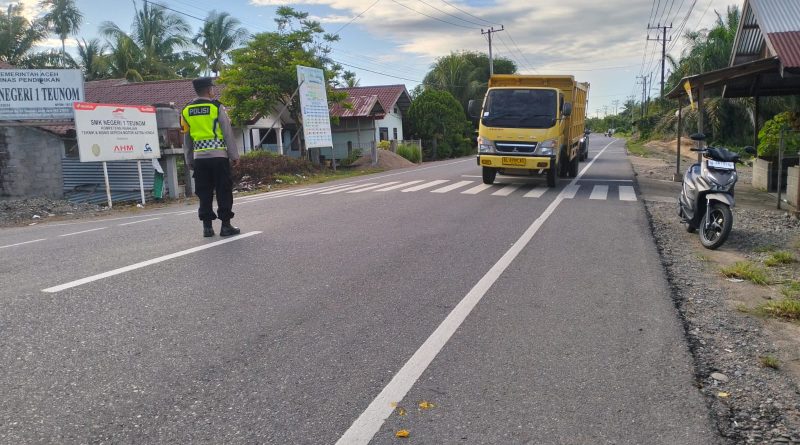 Personel Polsek Teunom Laksanakan Strong Point Pagi, Jaga Keselamatan Pelajar di Jalan Raya