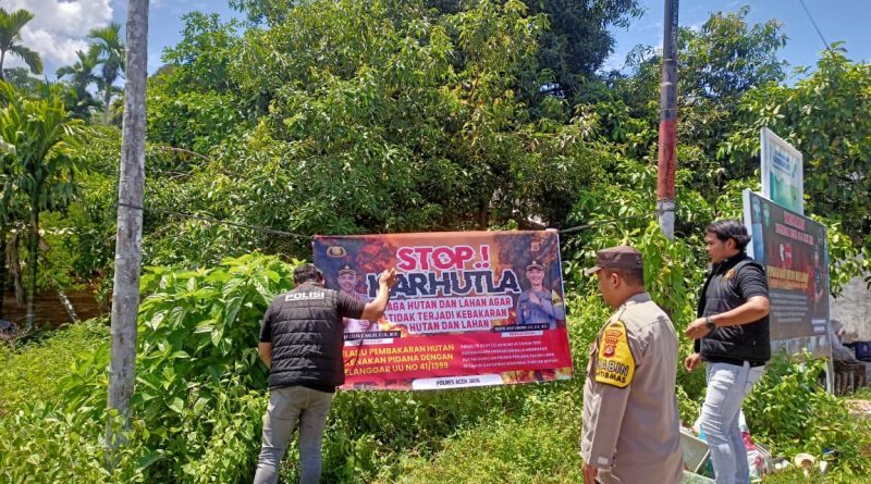 Polsek Setia Bakti Bersama Satreskrim Polres Aceh Jaya Pasang Spanduk Karhutla, Imbau Masyarakat Tidak Membakar Hutan