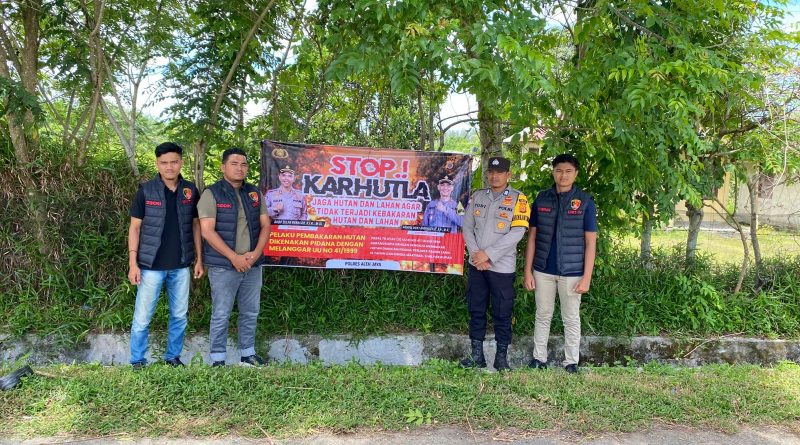 Calang – Dalam upaya pencegahan kebakaran hutan dan lahan (Karhutla), Bhabinkamtibmas Polsek Panga Polres Aceh Jaya melaksanakan kegiatan pemasangan spanduk himbauan Karhutla di wilayah hukumnya, Minggu (19/4/2026).